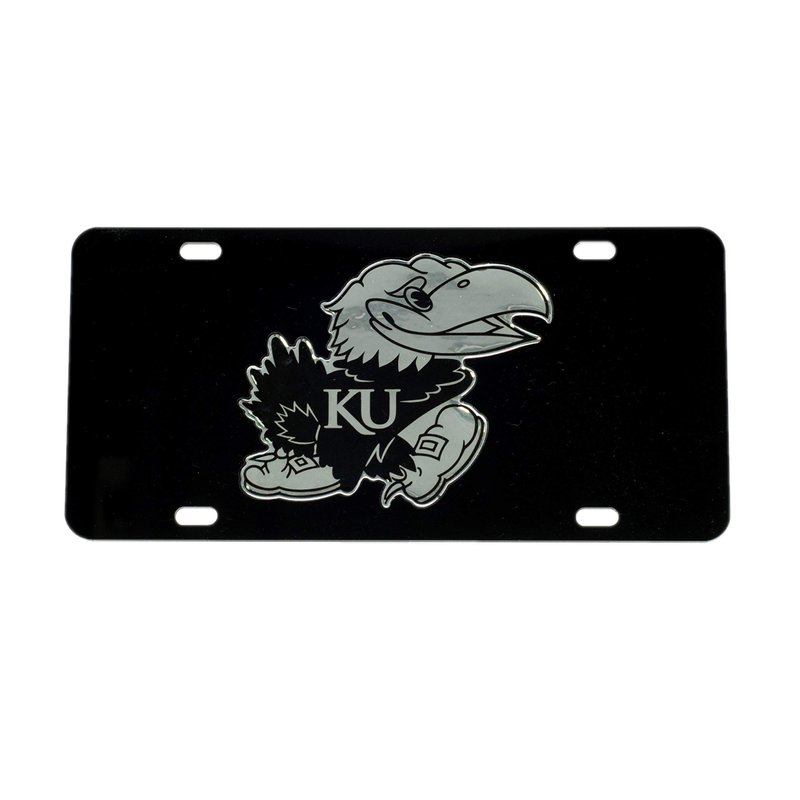 KU Kansas Black Jayhawk Mirrored License Plate Tag