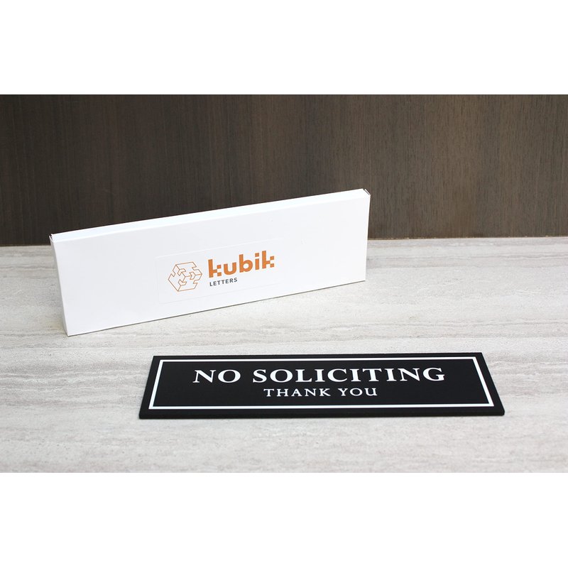 Kubik Letters Original No Soliciting Sign for House (with Strong Adhesive Tape) - No Soliciting Sign for Front Door - No Solicitors Sign for Front Door - No Solicitation Sign - Black 120 mil
