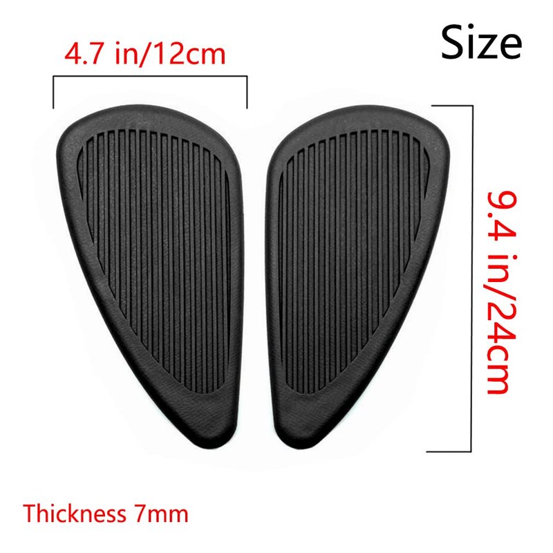 Specification: Condition: 100% Brand New Color: Black Adaptability: Universal Material: high quality rubber Size: Two styles as shown Package Included: 2 x Tank Pads Installation Method of Motorcycle Tank Knee Pad: Please clean the surface with 50% alcohol to make sure no dust. Heat the glue with the hot air gun. Install the products in the right place. Please keep your tank cover clean, and please don't polish with wax for your motorcycle a week ago before using our tank pad.