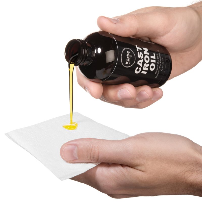Kuche Chef Cast Iron Oil is ideal for seasoning cast iron because it’s a “drying oil”, which means it will transform into a hard, tough film.