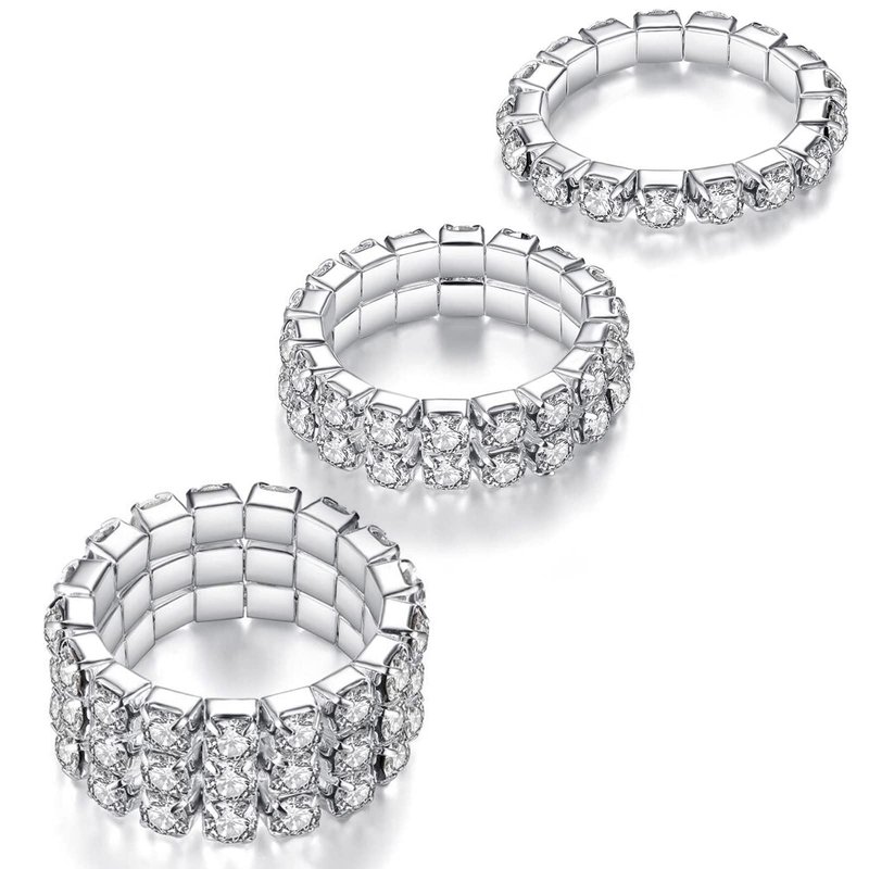 - 【Rhinestone Ring Set】You will receive 3 pieces of silvery rhinestone stretch rings, including 1 row ring, 2 rows ring, and 3 rows ring. These crystal ring sets are great costume accessories, provide a variety of different collocation, match with suitable apparel for different occasions, variety of rhinestones embedded in them, making you charming and attractive.