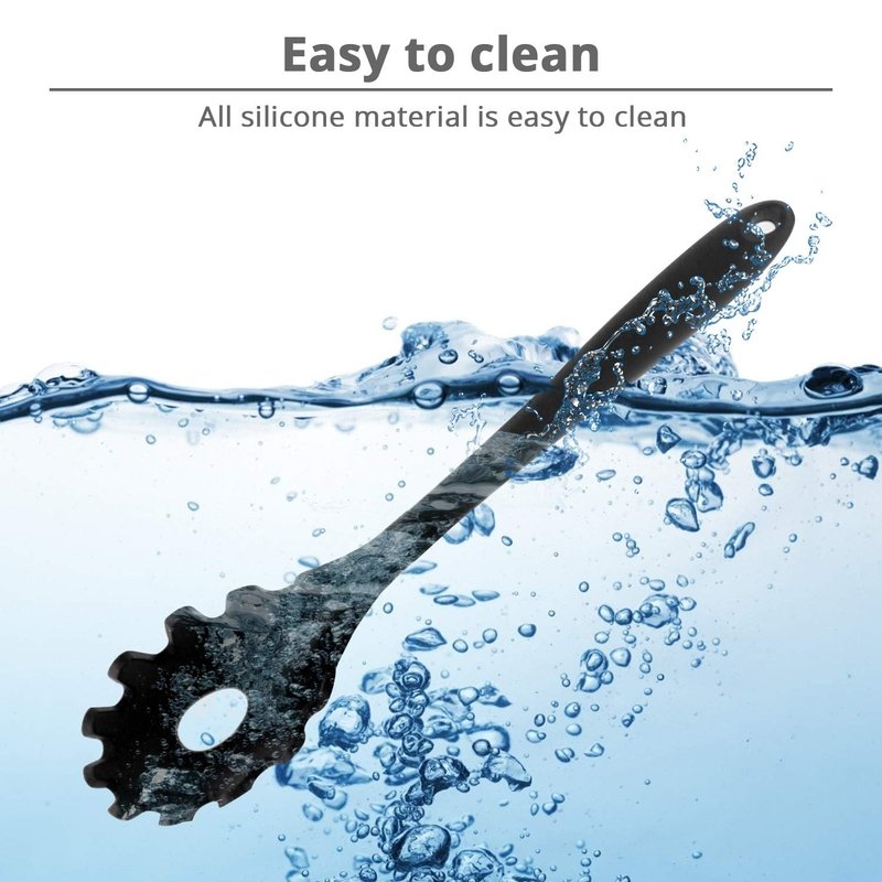 Cleaning up is a breeze too! Our spaghetti spoon is made with sturdy silicone and features a steel rod in the center for extra support and easy cleaning. Simply toss it in the dishwasher or hand wash it – the choice is yours!