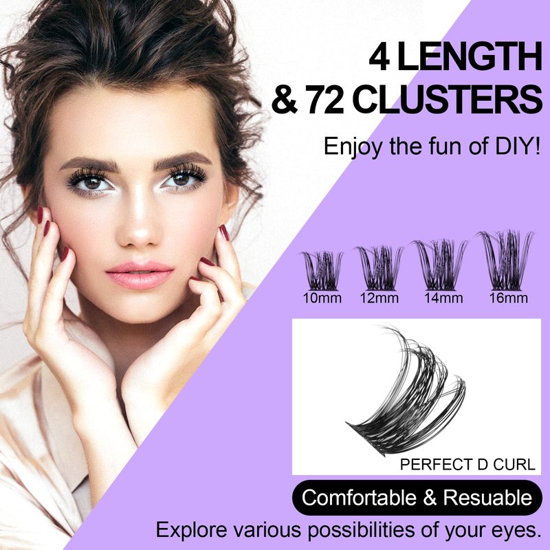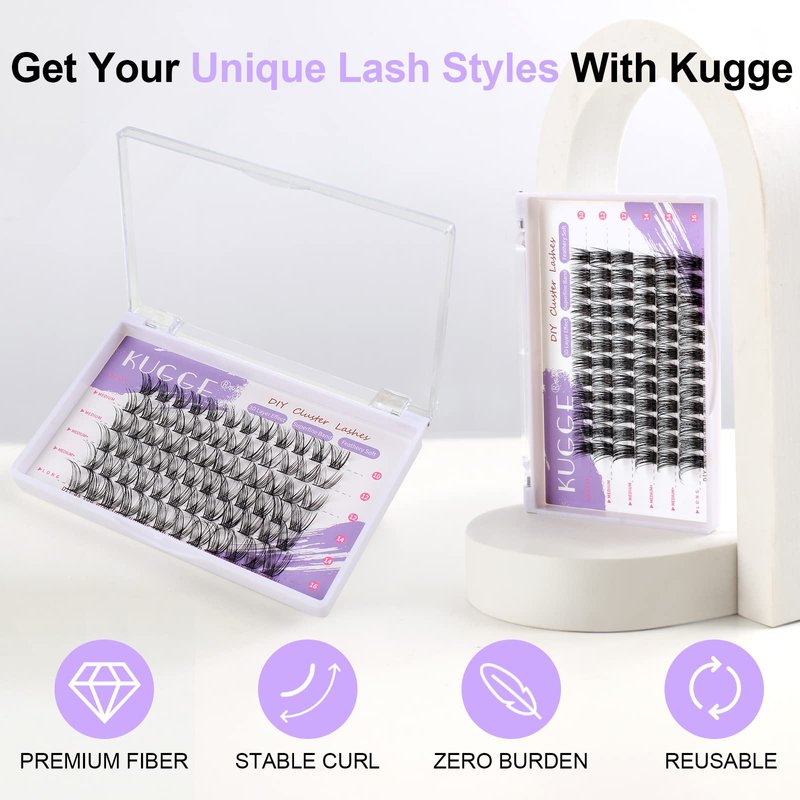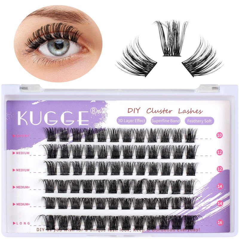 - 【4 LENGTH & 72 CLUSTERS】The Kugge individual lash tray offers a large capacity of 72PCS D curl lash clusters in mixed lengths (10/12/14/16). You can mix the lengths freely to create the kind of lash look you adore. And each cluster can be used up to 5 times with proper care. Same price for longer use!