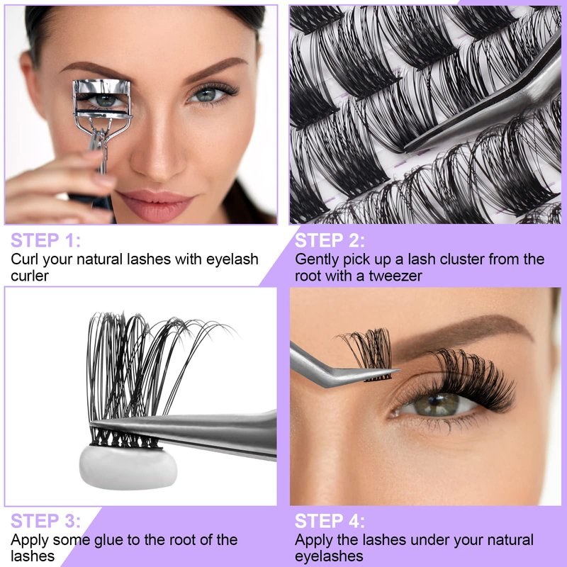 - 【SOFT, LIGHTWEIGHT AND THIN BAND】Our eyelash cluster is made of premium matte black memory fiber, which feels feathery light and soft and maintains wonderful D curls. The tapered tip looks more natural and kink-free. The 0.3mm superfine band ensures comfortable wear without being bulky.
