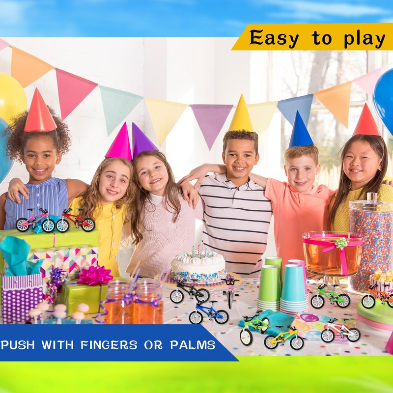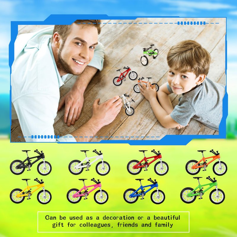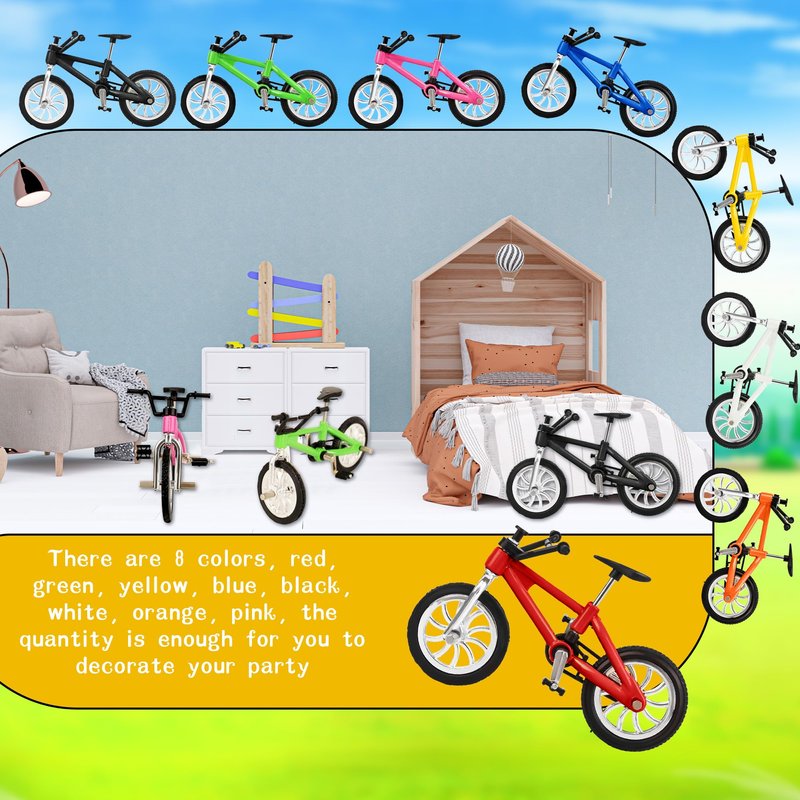 - 【What Will You Get】:You will receive a pack of 16 finger bike toys in 8 colors: red,blue,yellow,green,black,white,pink,orange, 2 of each color. Sufficient quantity and colors allow you to choose freely and share with friends.When not playing, it can be placed at home as a perfect decoration, reflecting a different taste