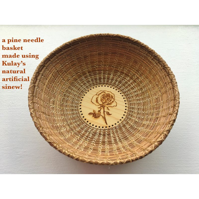 Kulay (pronounced as coo-lī) is a high-quality artificial sinew perfect for your projects that require a strong and sturdy thread, such as, pine needle baskets, loom work, dream catchers, stringing chokers and necklaces, knife handles, leather projects, tie-dye, general sewing, and more. It is lightweight, flat like a ribbon, and does not stretch.