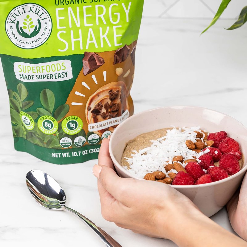 Kuli Kuli Organic Moringa Greens Smoothie Mix - Plant-Based Superfood Protein Smoothie Mix, Chocolate PB, 10.7 Ounce Pouch, Vegan and Gluten-Free with 8g Pea Protein and 1 Cup Greens Per Serving