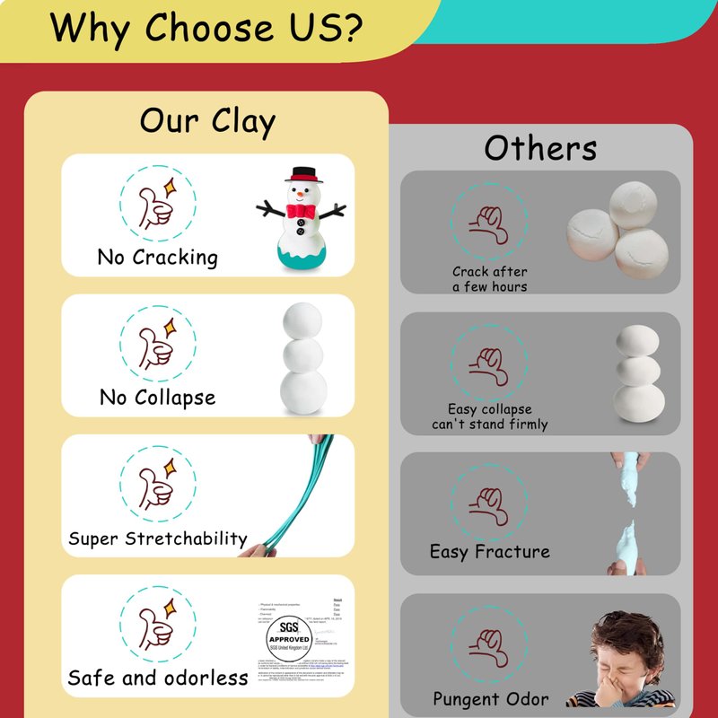 - Safety Material : Our snowman clay is soft & ultra light molding clay, soft to the touch, has no special smell, good malleability,and can dry within 24 hours. it's perfect for kids little hands and big imaginations.Easy to use for every kids