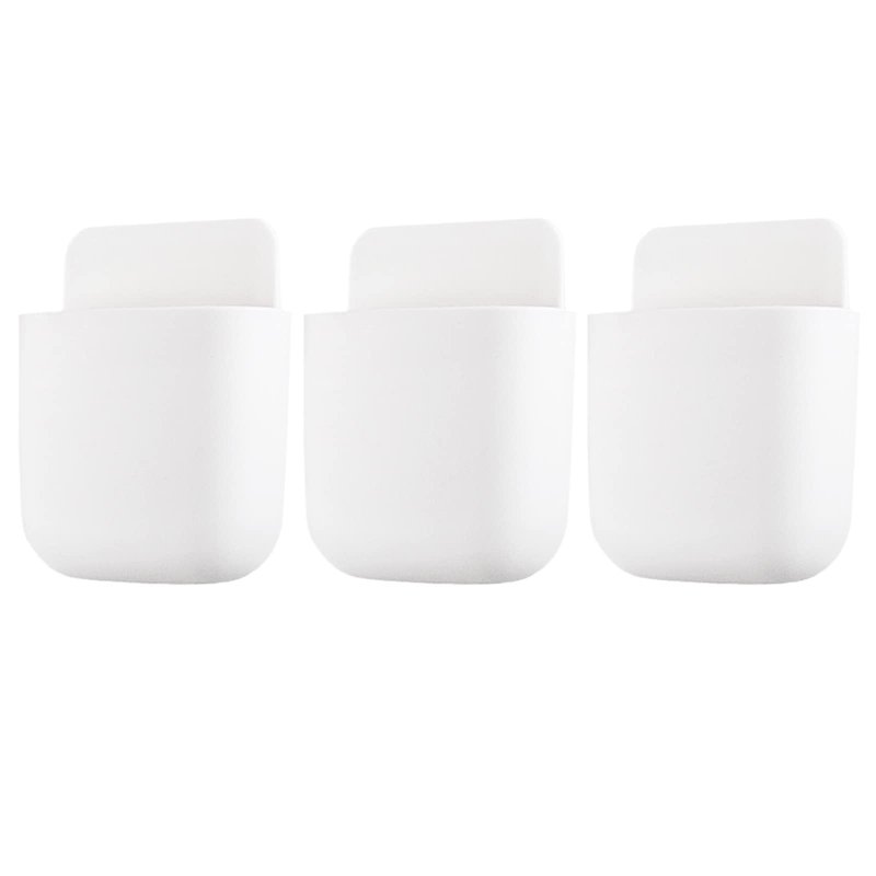 kulusion 3 Pcs Remote Control Holder, Wall Mount Pen Holder Hole-Free Self Adhesive Phone Charging Organizer Pencil Storage Containers for Home Office School Supply Orgaizer (White