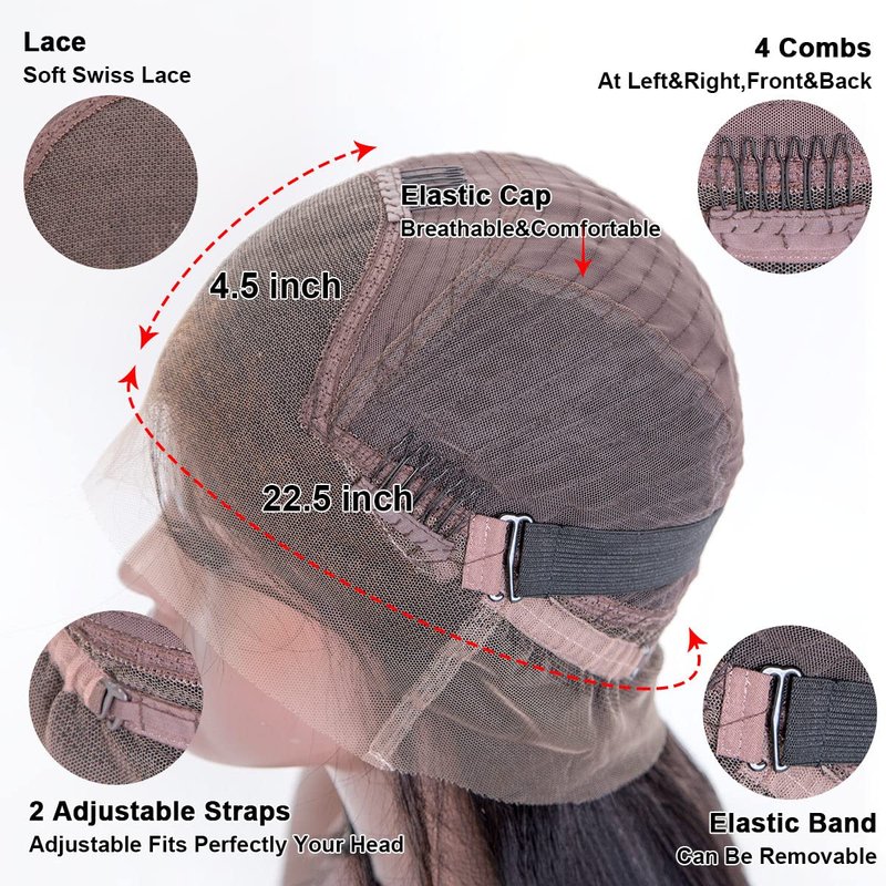 - Cap Size: Medium Size Cap(22±0.5 Inches) Available with 2 Adjustable Straps, 4 Combs, and A Removable Elastic Band, It will Let Your Wig Fit Snugly, Match Your Head Perfectly, Also No Glue, No Tape Necessary, Very Friendly for Beginners.