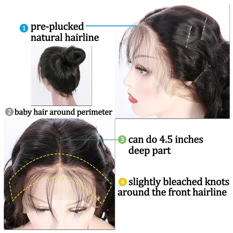 - Wig Advantages: 360 Lace Wigs Can Do High Ponytail & Bun, Functionally Similar to Full Lace Wigs, Front Can Do 4.5 Inches Deep Part. Pre Plucked Natural Hairline, Bleached Knots on Hair Roots, Looks Natural. Light Brown Swiss Lace - Soft & Durable.