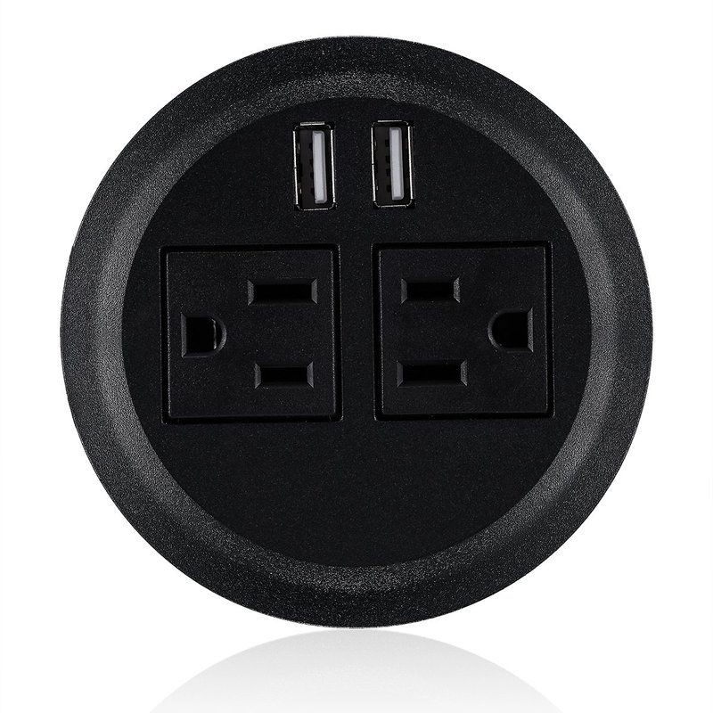 Kungfuking Desktop Power Grommet Power Outlet Socket Desk Data Center 2 Outlet with 2 USB Ports with 10 FT Extension Cord Black