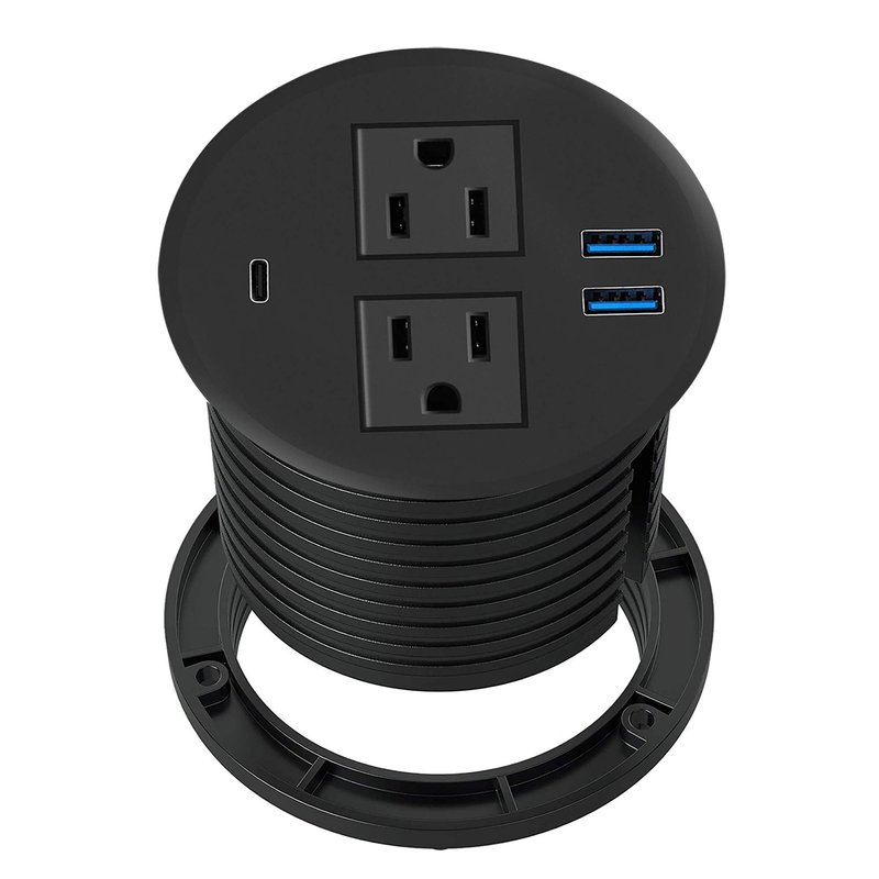 - Desktop Power Grommet Easy To Use: make a 80mm/3 1/8” hole saw on the table surface, After that you just need to insert the power grommet through