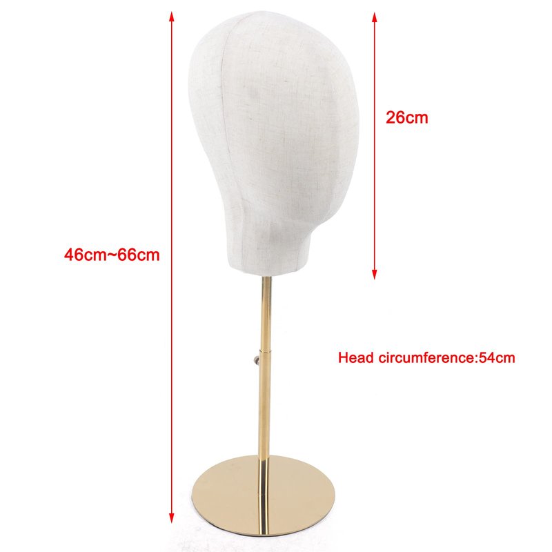 kunghei Hat Display Mannequin, Head Hat Cap Hair Holder Rack Height Adjustable 45-65cm Wig Mannequin Head Manikin Cap Toupee Display Stand Rack (Gold)