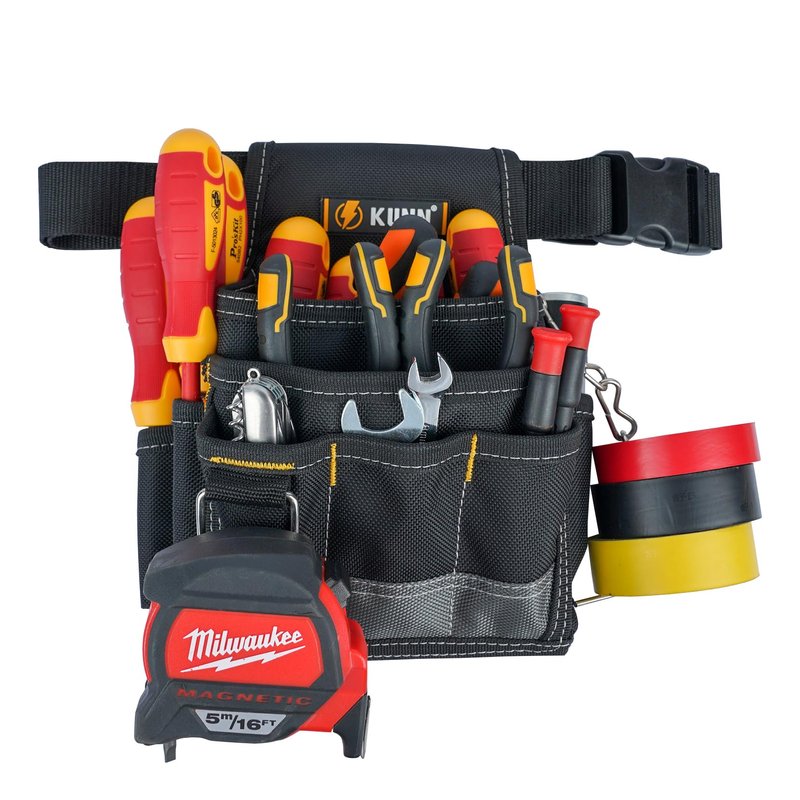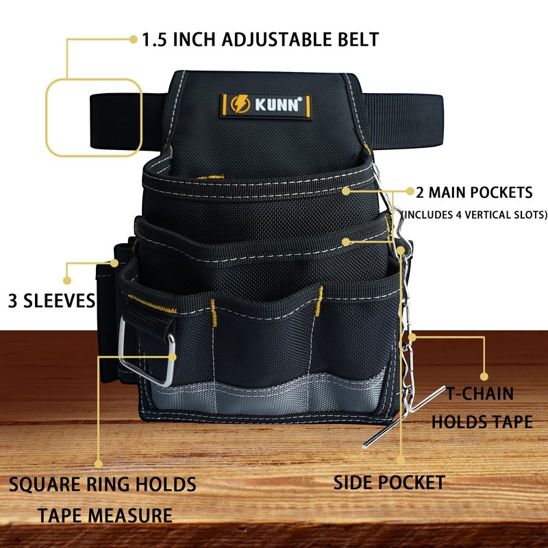 - KUNN electrician tool pouch 13 pockets and loops provide enough storage space to hold your major small hand tools