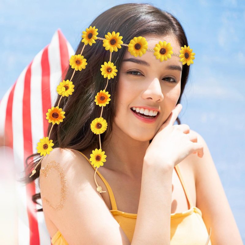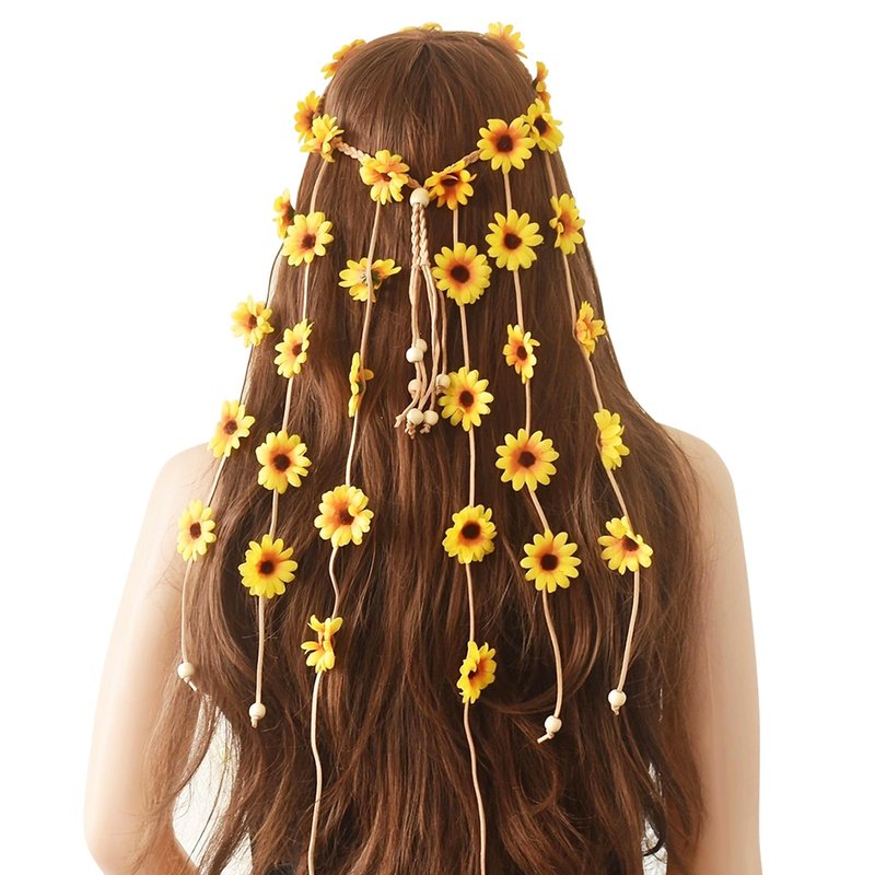 Kunyeah Flower Headband for Girl Daisy Tassel Headpiece Bohemian Hair Band Floral Bandana Party Hair Accessories for Women (Yellow)