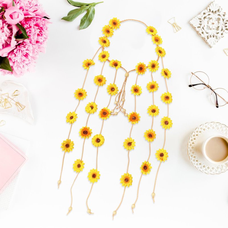 With its colorful and long tassel design, the daisy hairband will create a elegant atmosphere. The size of the bandana circumference can be adjusted with beads for women of most ages and hairstyles.