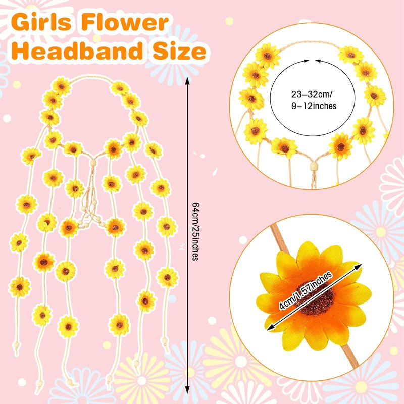 - Adjustable Size: The length of the headband is 64cm/25inches, the circumference of the floral headdress is 23-32cm/9-12inches and the diameter of the flower is 4cm/1.57inches. The size of the garland can be adjusted with beads, a size fits most girls.