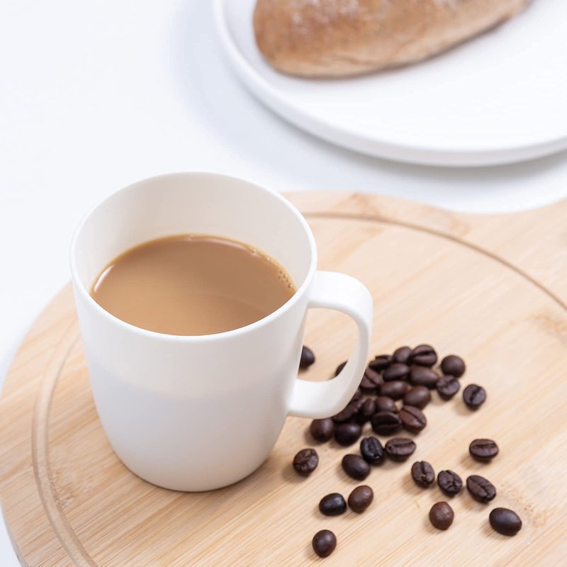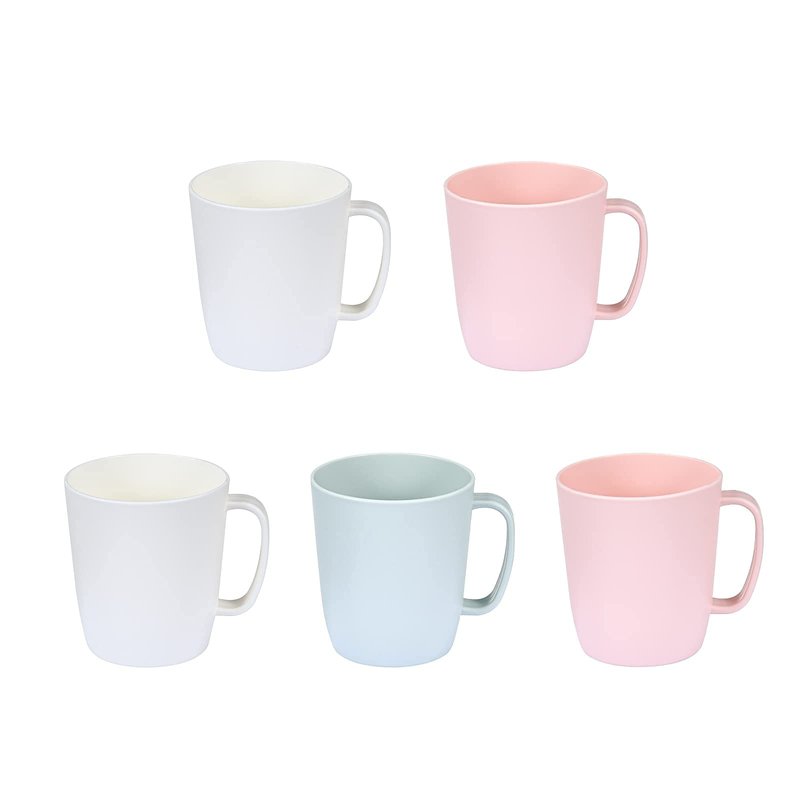 - 【SUITABLE SIZE FOR USING】-The plastic coffee cups set hold 10 oz. You will get White x 2, Pink x 2, Green x 1.The perfect size is suitable for a cup of morning coffee, espresso, tea, cereal or milk. The handle is comfortable for holding, your thumb is secure on the edges and will not be going to slip out of your hand.