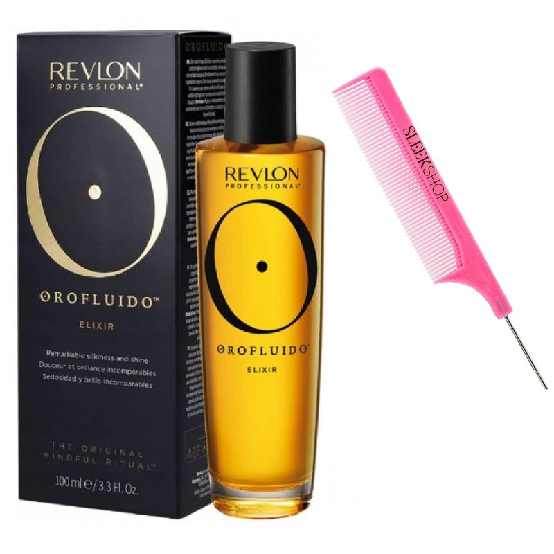 Includes an Argan-Oil Infused Pink Steel Pin Rat Tail Comb for easy and precise application while providing separation of hair ! Provides professional results! Anti-Static Metal Pin can be used for sectioning, parting, and styling the hair when coloring or lightening! The new PINK version is Argan-Oil infused which moisturizes hair while detangling. NEWEST VERSION for 2024-2025 with the latest packaging and original formula. OROFLUlDO is back and now part of RevIon Professional, with the same iconic Argan Oil Elixir and signature fragrance! OROFLUlDO Elixir Hair Oil, The ORIGINAL Mindful Ritual by RevIon: With a satin, quick penetrating texture. Contains Argan Oil, Cyperus Oil & Linseed Oil to add shine & detangle hair. Adds body & movement to hair. Minimizes drying time without leaving residue in the hair. Infused with a delicious oriental fragrance of amber & vanilla. Leaves hair smooth, radiant & manageable. Perfect for all skin types. OROFLUlDO’s Original Elixir instantly hydrates, softens, and adds shine to locks with a quick-absorbing formula rich in argan, cyperus, and linseed oils. This lightweight elixir also protects tresses from harmful UV rays and makes them more manageable. When used on damp hair, this formula gives locks more volume and movement while also improving the ‘dos dry time. When used on dry hair, it leaves locks more supple and flexible. Ingredients: Cyclopentasiloxane Dimethiconol Argania Spinosa Kernel Oil Cyperus Esculentus Root Oil Isopropyl Palmitate BHT Linum Usitatissimum (Linseed) Seed Oil Benzophenone-3 Parfum (Fragrance) Linalool Red 17 (CI 26100) Yellow 11 (CI 47000).