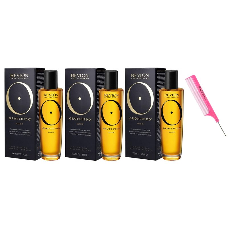 Includes an Argan-Oil Infused Pink Steel Pin Rat Tail Comb for easy and precise application while providing separation of hair ! Provides professional results! Anti-Static Metal Pin can be used for sectioning, parting, and styling the hair when coloring or lightening! The new PINK version is Argan-Oil infused which moisturizes hair while detangling. NEWEST VERSION for 2024-2025 with the latest packaging and original formula. OROFLUlDO is back and now part of RevIon Professional, with the same iconic Argan Oil Elixir and signature fragrance! OROFLUlDO Elixir Hair Oil, The ORIGINAL Mindful Ritual by RevIon: With a satin, quick penetrating texture. Contains Argan Oil, Cyperus Oil & Linseed Oil to add shine & detangle hair. Adds body & movement to hair. Minimizes drying time without leaving residue in the hair. Infused with a delicious oriental fragrance of amber & vanilla. Leaves hair smooth, radiant & manageable. Perfect for all skin types. OROFLUlDO’s Original Elixir instantly hydrates, softens, and adds shine to locks with a quick-absorbing formula rich in argan, cyperus, and linseed oils. This lightweight elixir also protects tresses from harmful UV rays and makes them more manageable. When used on damp hair, this formula gives locks more volume and movement while also improving the ‘dos dry time. When used on dry hair, it leaves locks more supple and flexible. Ingredients: Cyclopentasiloxane Dimethiconol Argania Spinosa Kernel Oil Cyperus Esculentus Root Oil Isopropyl Palmitate BHT Linum Usitatissimum (Linseed) Seed Oil Benzophenone-3 Parfum (Fragrance) Linalool Red 17 (CI 26100) Yellow 11 (CI 47000).