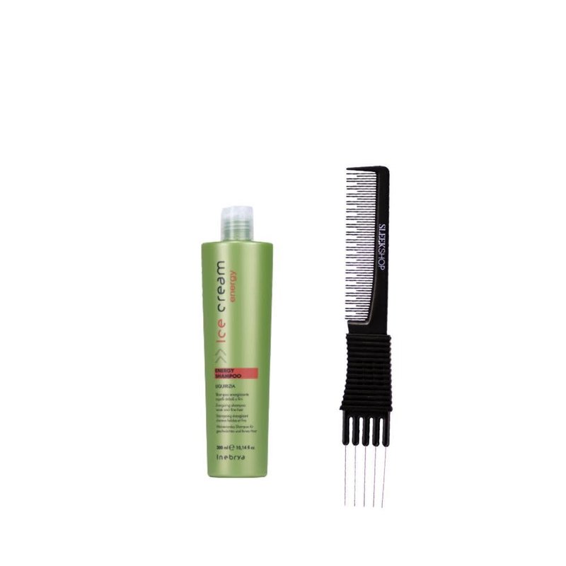 kuss Inebrya Ice Cream Energy Shampoo (10.14 oz) with Teasing Comb Pack of 1