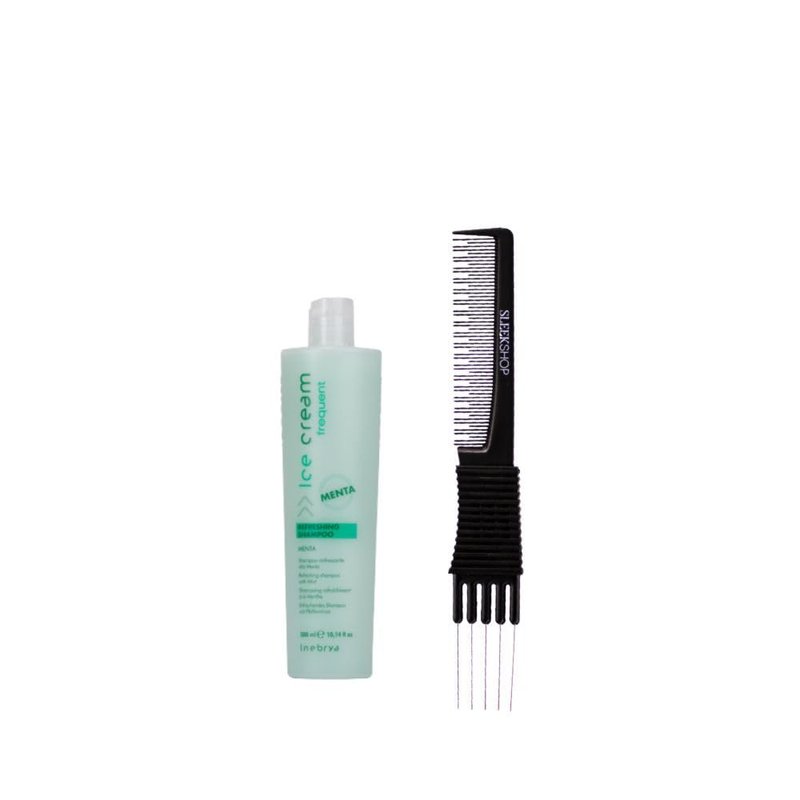 kuss Inebrya Ice Cream Frequent Refreshing Shampoo (10.14 oz) with Teasing Comb Pack of 1