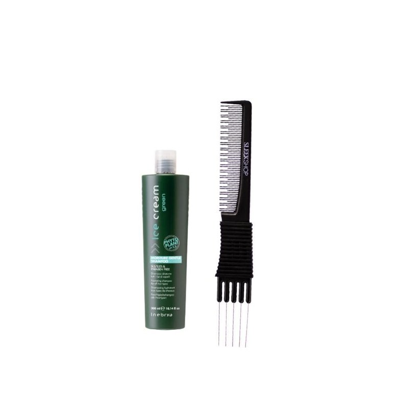 kuss Inebrya Ice Cream Green Moisture Gentle Shampoo (10.14 oz) with Teasing Comb Pack of 1