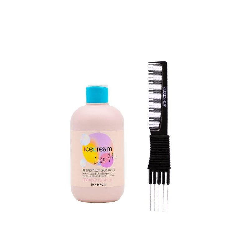 kuss Inebrya Ice Cream Liss-Pro Shampoo (10.14 oz) with Teasing Comb Pack of 1