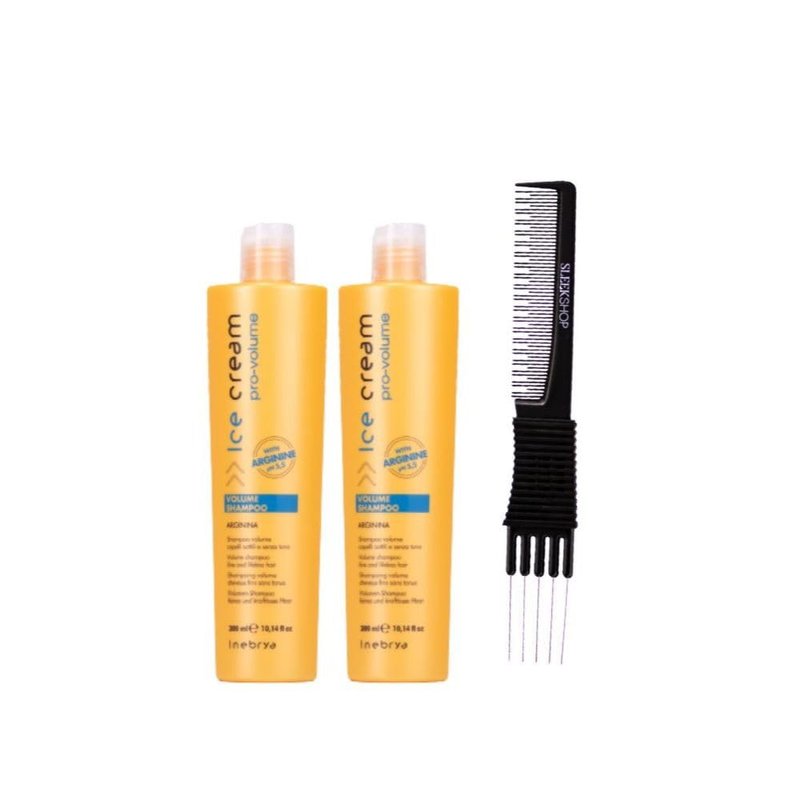 kuss Inebrya Ice Cream Pro Volume Shampoo (10.14 oz) with Teasing Comb Pack of 2