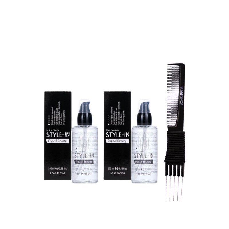 kuss Inebrya Ice Cream Style-In Crystal Beauty Fluid Shine Solutin (3.38 oz) with Teasing Comb Pack of 2