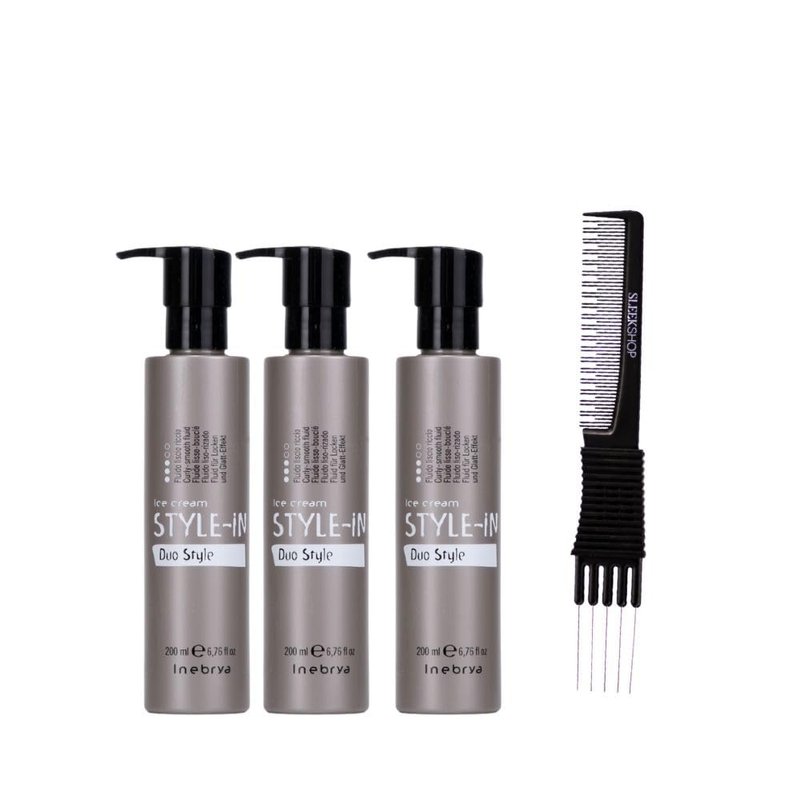 kuss Inebrya Ice Cream Style-In Duo Style (6.76 oz) with Teasing Comb Pack of 3