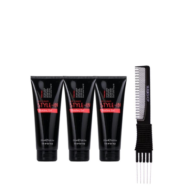 kuss Inebrya Ice Cream Style-In Fluiding Gel (8.45 oz) with Teasing Comb Pack of 3
