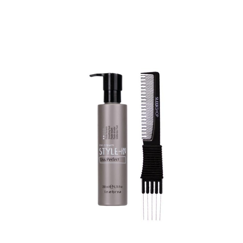 kuss Inebrya Ice Cream Style-In Liss Perfect Smoothing Fluid (6.76 oz) with Teasing Comb Pack of 1