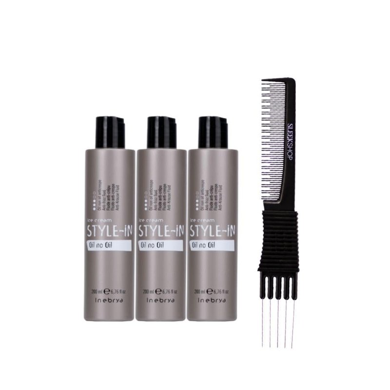 kuss Inebrya Ice Cream Style In oil No oil Anti-Frizz Fluid (6.76 oz) with Teasing Comb Pack of 3