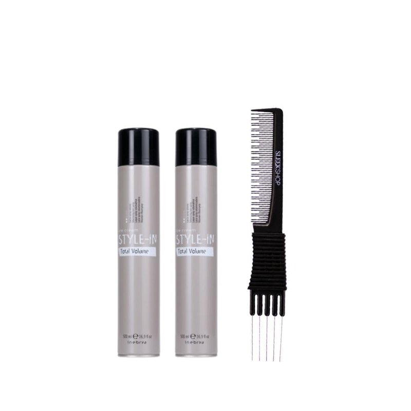 kuss Inebrya Ice Cream Style In Volumizing Hair Spary (16.9 oz) with Teasing Comb Pack of 2