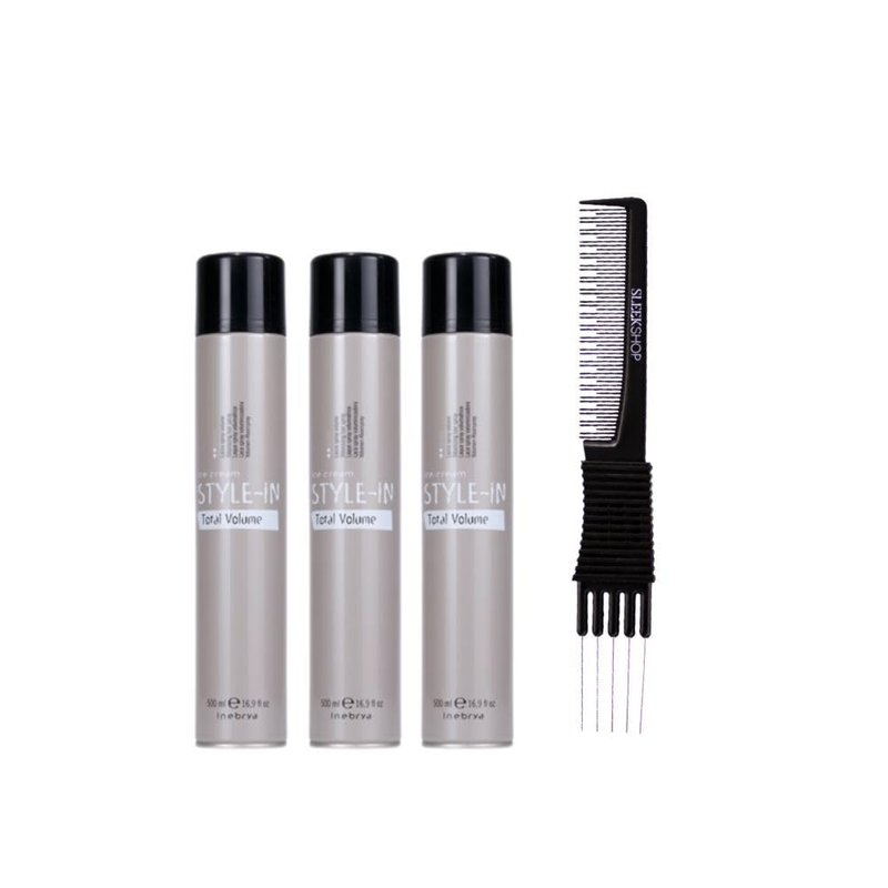 kuss Inebrya Ice Cream Style In Volumizing Hair Spary (16.9 oz) with Teasing Comb Pack of 3
