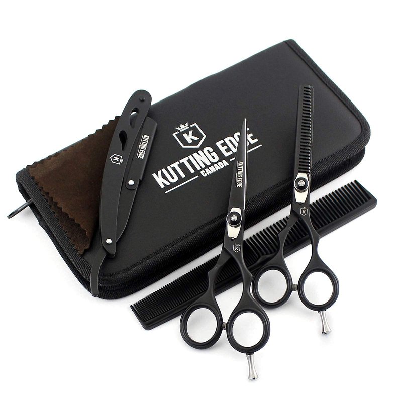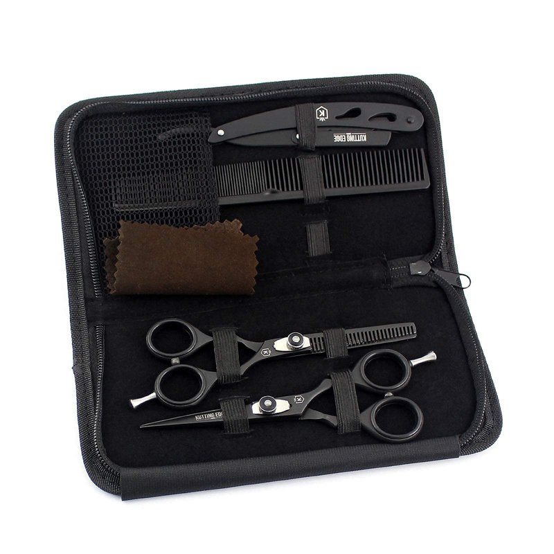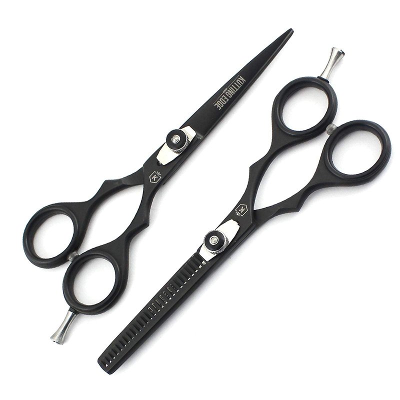 Kutting Edge - Hair Scissors Professional Hair Cutting Scissors Kit Thinning Shears - Hairdressing Scissors Set - Stainless Steel Barber Black Scissors 6.0”