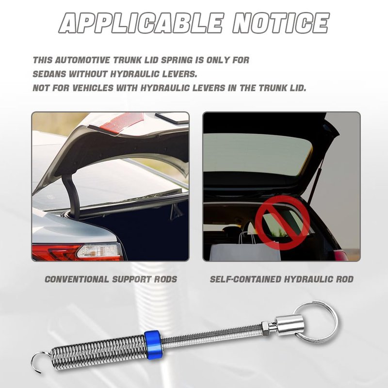 - [Function]: The car boot lid spring can make the trunk cover automatically spring up. Lifting the trunk lid manually is very troublesome, especially when you are carrying heavy objects, it is more difficult to open the trunk, our Car trunk lid metal spring can effectively solve the problem of inconvenient use of the trunk. It is a universal car trunk accessory that bring you a lot of help.