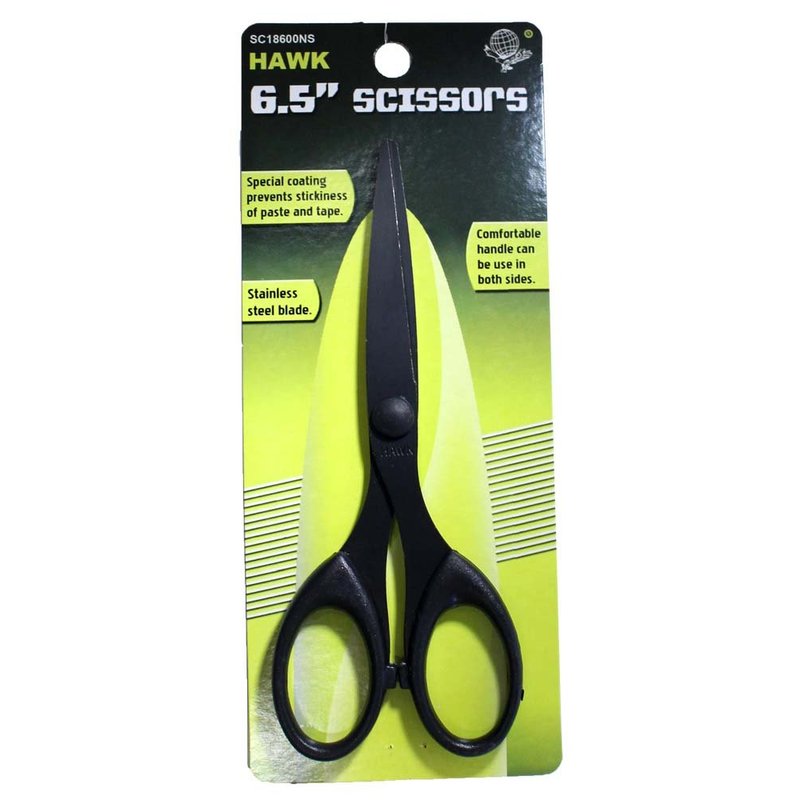 KUTZ 6.5" (16.5 cm) Long Black Non-stick Scissors (Pack of 2, Model: SC-18611-Z02-86). These black scissors are tailored for optimal performance in crafts and hobbies, particularly excelling in tasks like scrapbooking. Boasting a specialized non-stick coating over stainless steel, they remain adhesive-free even when working with paste and tape, ensuring clean and precise cuts. Measuring 6.5" (16.5 cm) in length, these scissors feature equal-sized finger holes, making them ambidextrous and suitable for both right and left-handed users. Crafted from durable stainless steel, they exhibit longevity and strength, while the black non-stick coating guarantees hassle-free use with pastes and tapes. Whether you're scrapbooking, making jewelry, crafting, designing, or engaging in hobbies, these scissors deliver a sharp and precise cut every time. The straight blades are engineered for precision, ensuring consistent and accurate results.