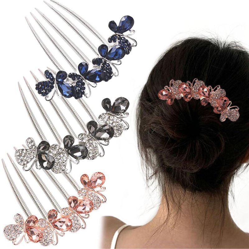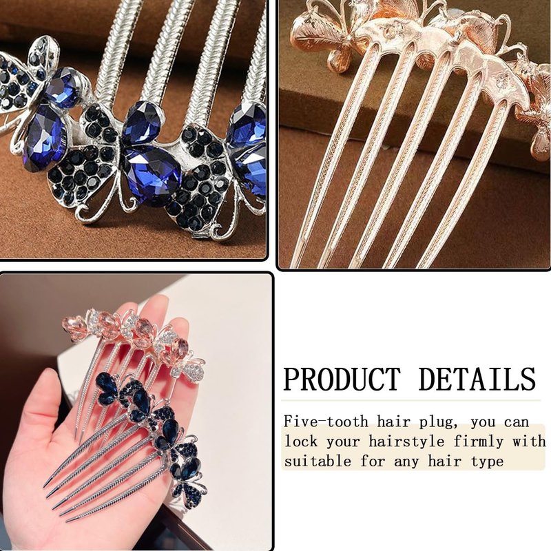 KuuGuu 3 PCS Butterfly Rhinestones Hair Combs 5 Teeth Hair Side Combs Crystal Vintage Headpieces Hair Tools Pins Hair Clips Accessories Bride Headdress for Women Girls Wedding Daily Party Gift