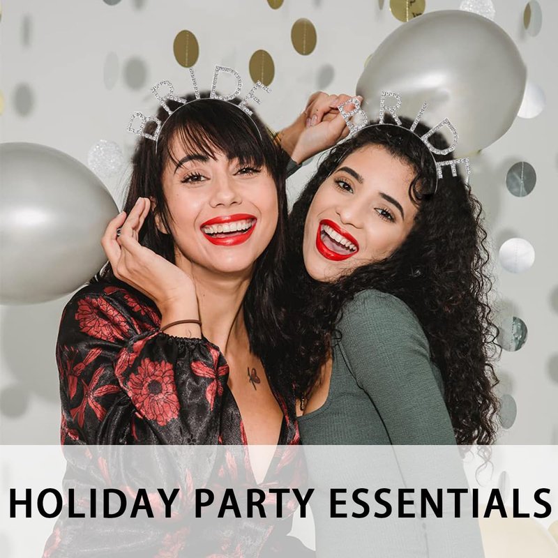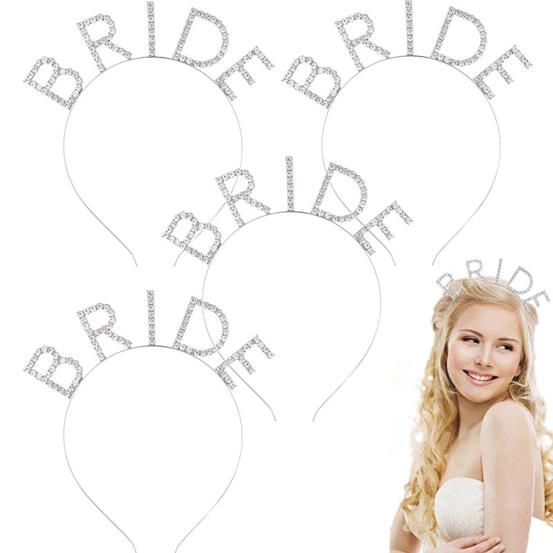 KuuGuu 4 PCS Bride Rhinestone Headband Sparkling Bachelorette Party Favors Elegant Bride Crown Wedding Present Bridal Shower Decorations For Women Girls Birthday Headpiece Hair Accessories (Silver)