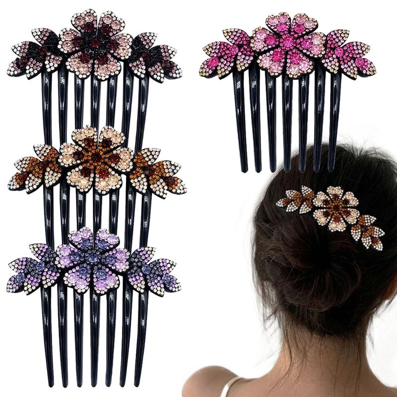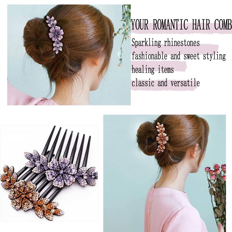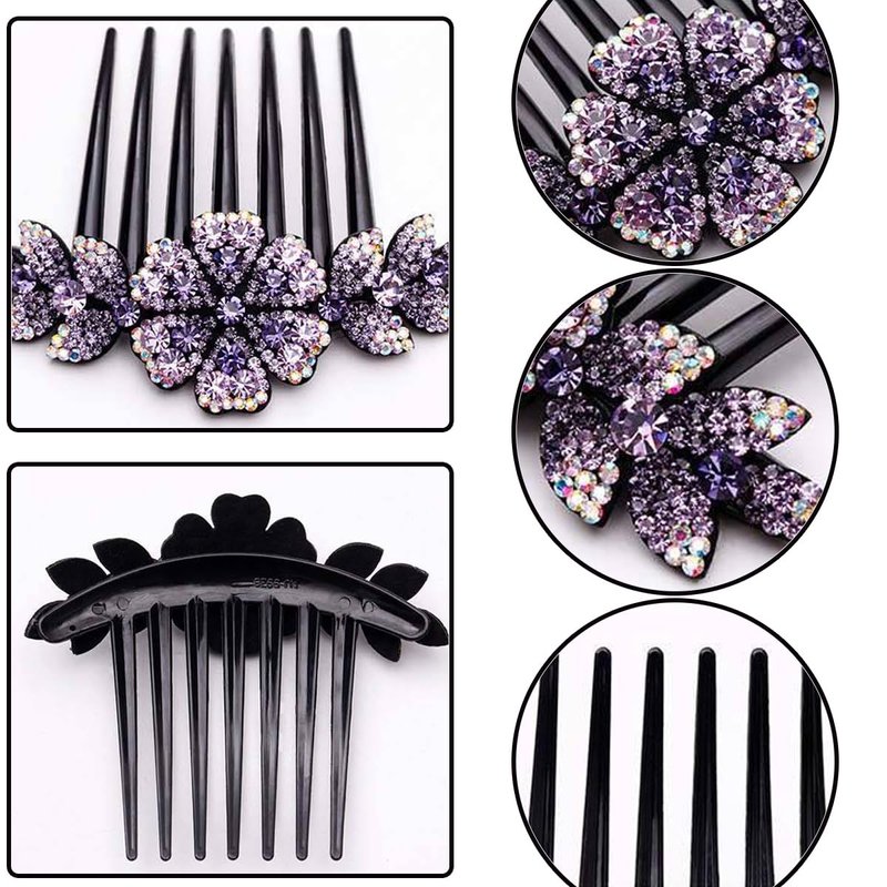 KuuGuu 4 PCS Luxury Sparkly Glitter Flower Leaf Rhinestone Black Plastic Hair Side Combs Women Flower Hair Comb Pins Rhinestone Slide Clips Bride Wedding Headdress Hair Accessories