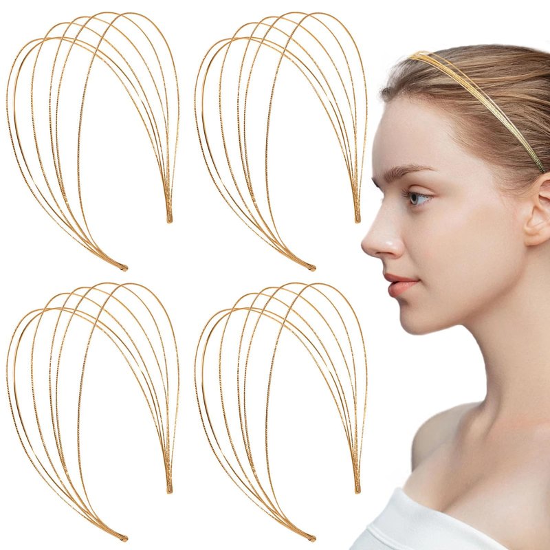 KuuGuu 4 PCS Multi Layers Metal Headbands Simple Gold Layered Thin Hair Hoop Hairband Non Slip Wedding Row Wire Hair Band Headpiece Hair Accessories for Women and Girls (Gold)