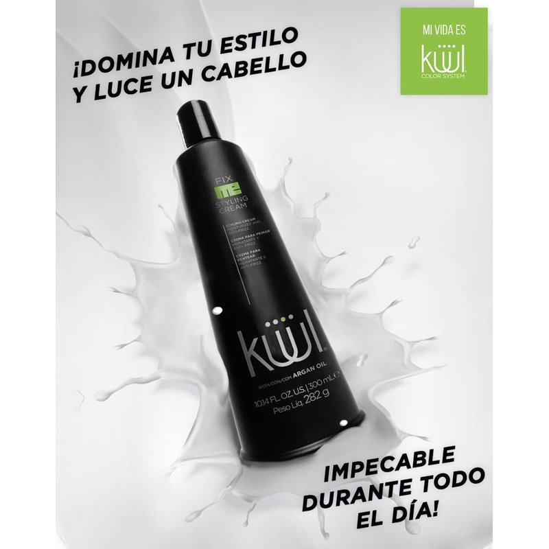 - KÜÜL FIX ME STYLING CREAM es una novedosa crema para peinar de uso diario con efecto anti-frizz y anti-sponge que aporta manejabilidad y sedosidad a cualquier tipo de cabello.
