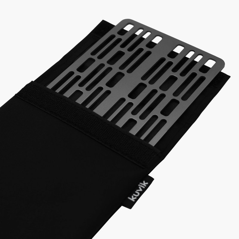 - TITANIUM CONSTRUCTION: Crafted from ultralight titanium, this 9.9” x 4.3” (252mm x 109mm) grill is a backpacker's dream. Weighing only 5.7oz (162g), this grill provides the convenience of grilling without compromising on your pack weight. Perfect for campers and backpackers who prioritize space efficiency, this 0.125” (3.2mm) thick grill can slip seamlessly into your backpack. A lightweight carrying case is included to help contain soot after use.