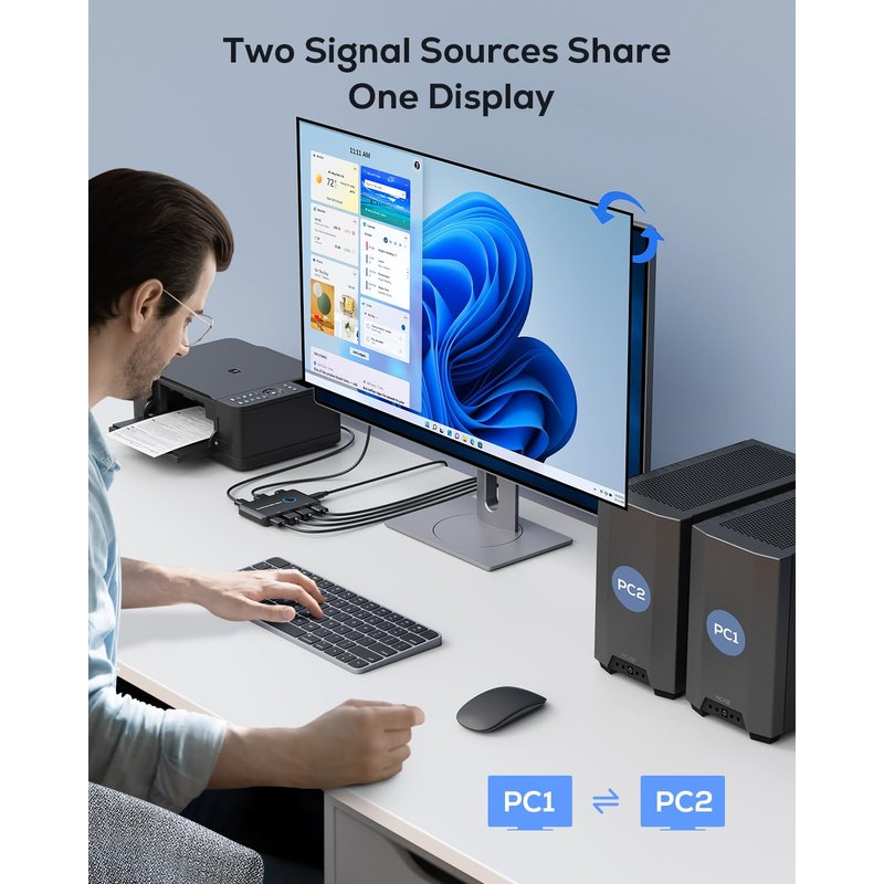 - 【What you will Get】:ABLEWE provide lifetime technical support for this kvm switcher.Package include:1*kvm switcher,2*1M*USB 2.0 Cable.2*1M*HDMI cable,1*USB C Power Cable ,1*User Manual.Any problem,pls contact us to solve.