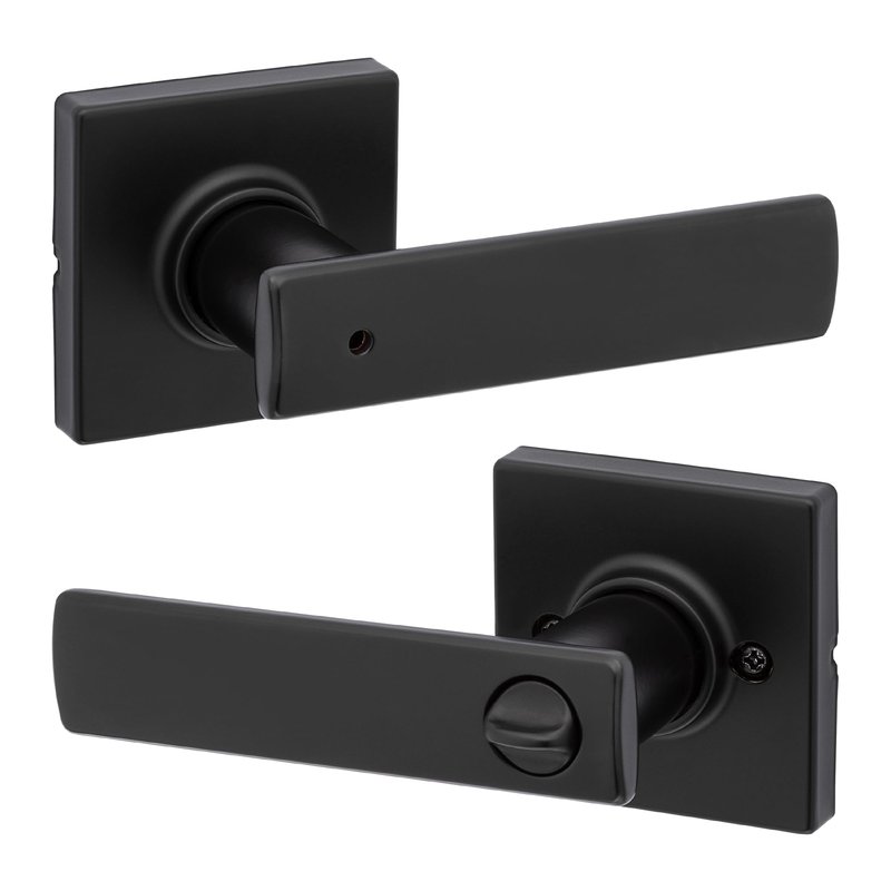 Kwikset Breton Interior Privacy Door Handle with Lock, Door Lever For Bathroom and Bedroom, Matte Black Reversible Keyless Turn Lock, with Microban Protection