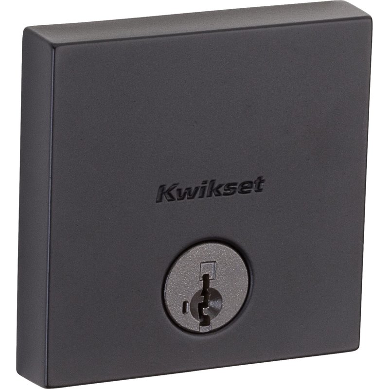 Kwikset Downtown Deadbolt Lock, Matte Black Square Exterior Keyed Front Entry Door, Pick Resistant SmartKey Rekey Security, Single Cylinder Dead Bolt, with Microban Protection