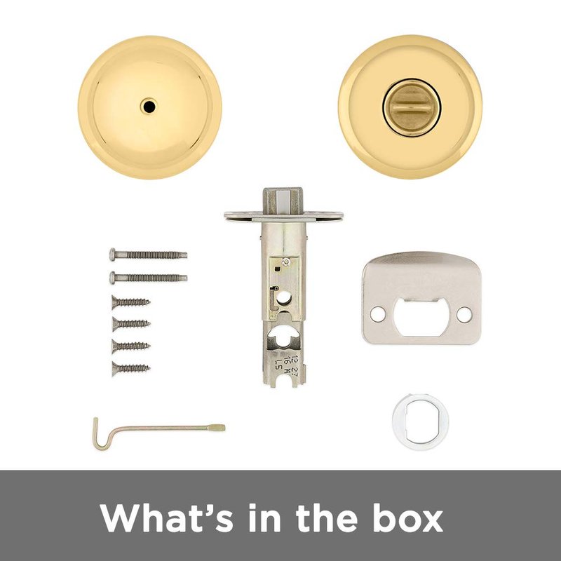 - BOX INCLUDES: Exterior and Interior Knobs, Screws, Adjustable Latch, Strike Plate, Emergency Unlock Tool, Installation Hardware, Install Guide